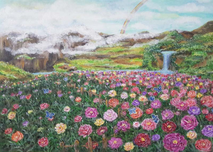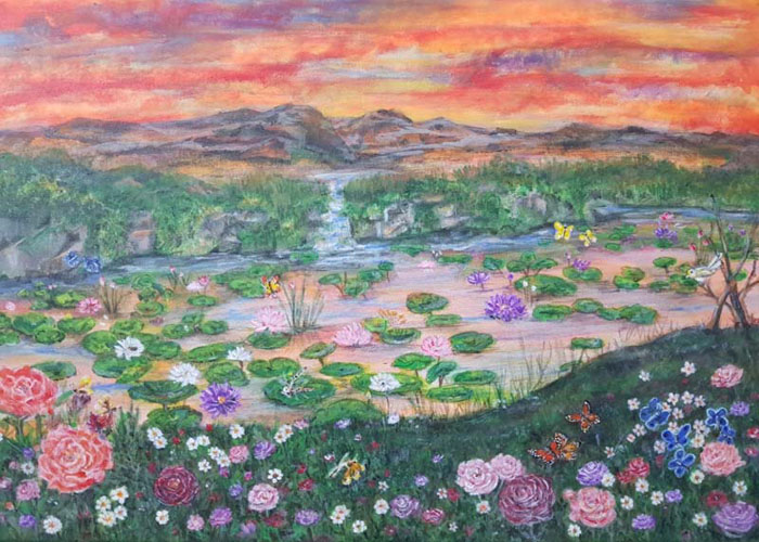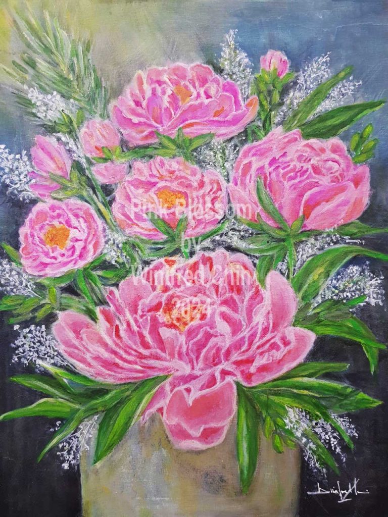 Wini painted this beautiful piece for my friends in Singapore. I presented it to them as a gift for their new home. They were very pleased with it, especially the accompanying handpainted words that give the painting so much more meaning.