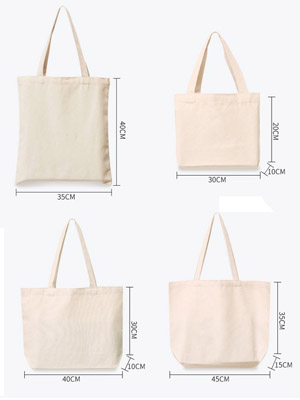 For customization, pick the bag shown in the diagram. The cotton canvas bags come in cream color. The slim handles ensure durability and strength for everyday use. The bags have gone through rigorous stress tests and can hold up to 15kg of weight. Please allow 1-2cm difference in the measurement.