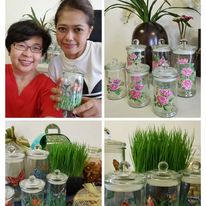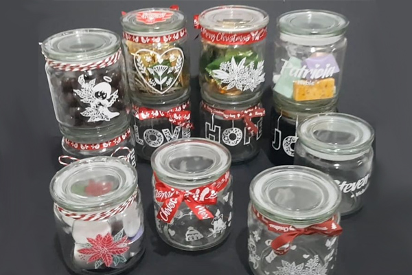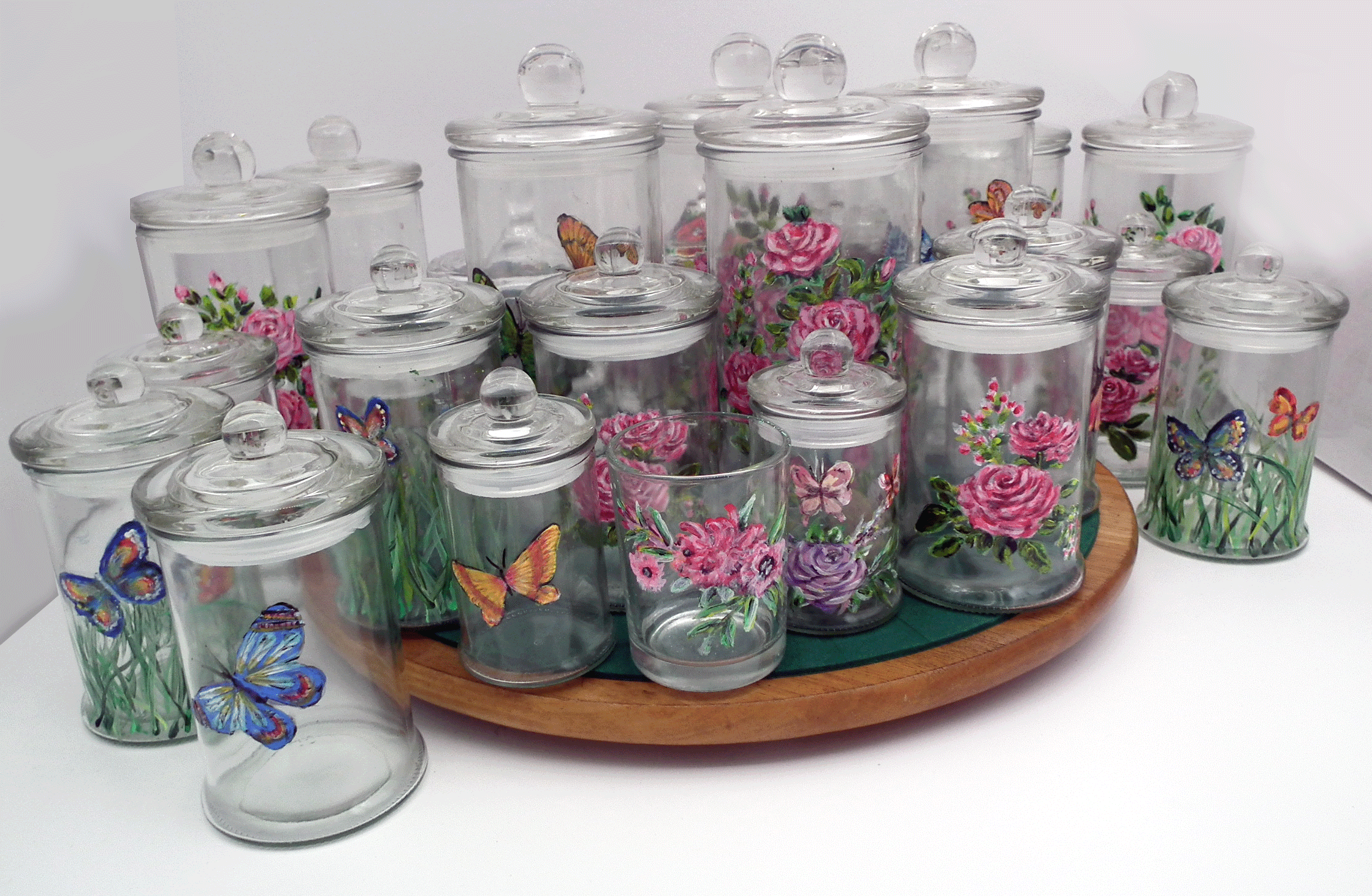 Wini's work of art inspired me to have something different for my Hari Raya cookie jars rather than buying the jars from the store. I called Wini to design using butterflies and roses motif for the jars and it turned out so beautiful!❤️I ordered medium and large jars and arranged all my cookies in the jars.All handmade and so unique! Thank you Wini for your beautiful work of art on a glass!"🥰🥰🥰